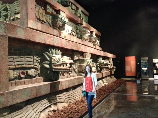 Afterwards, we took a group of people from CIMMYT out to dinner at Tejamaniles, a favorite Mexican restaurant in Texcoco. Everyone brought their families and we had a really nice time! Saturday we headed to Mexico City. Stacey and I walked to the National Museum of Anthropology, and got our final favorite snacks of elote (corn in a cup with condiments) and agua de jamaica (hibiscus water). Here’s one of the exhibits from the museum: